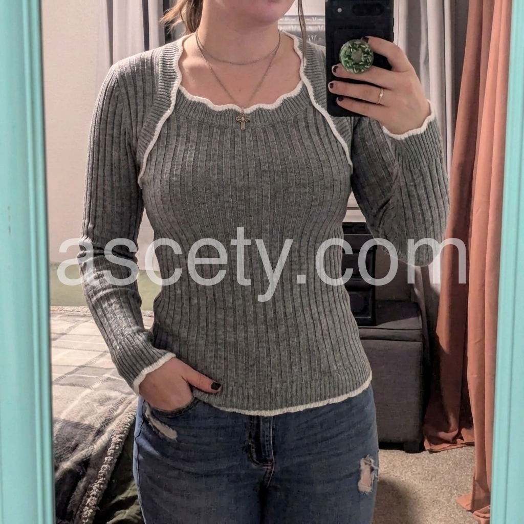 Grey Square Neck Long Sleeve Sweater