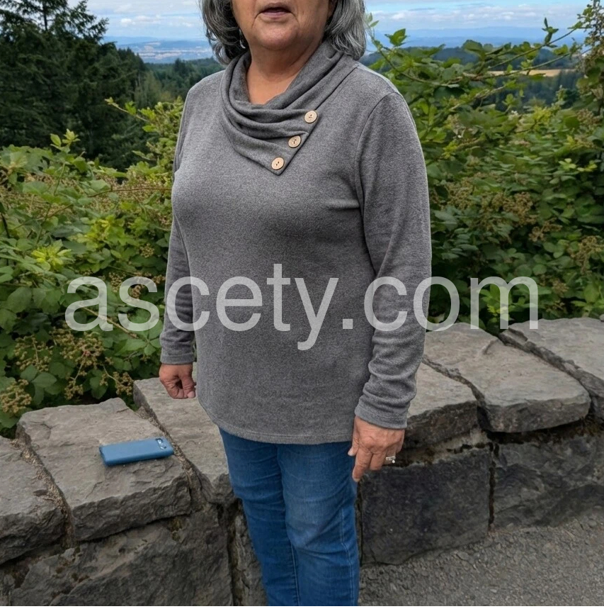 Grey Plain Round Neck Long Sleeve Top