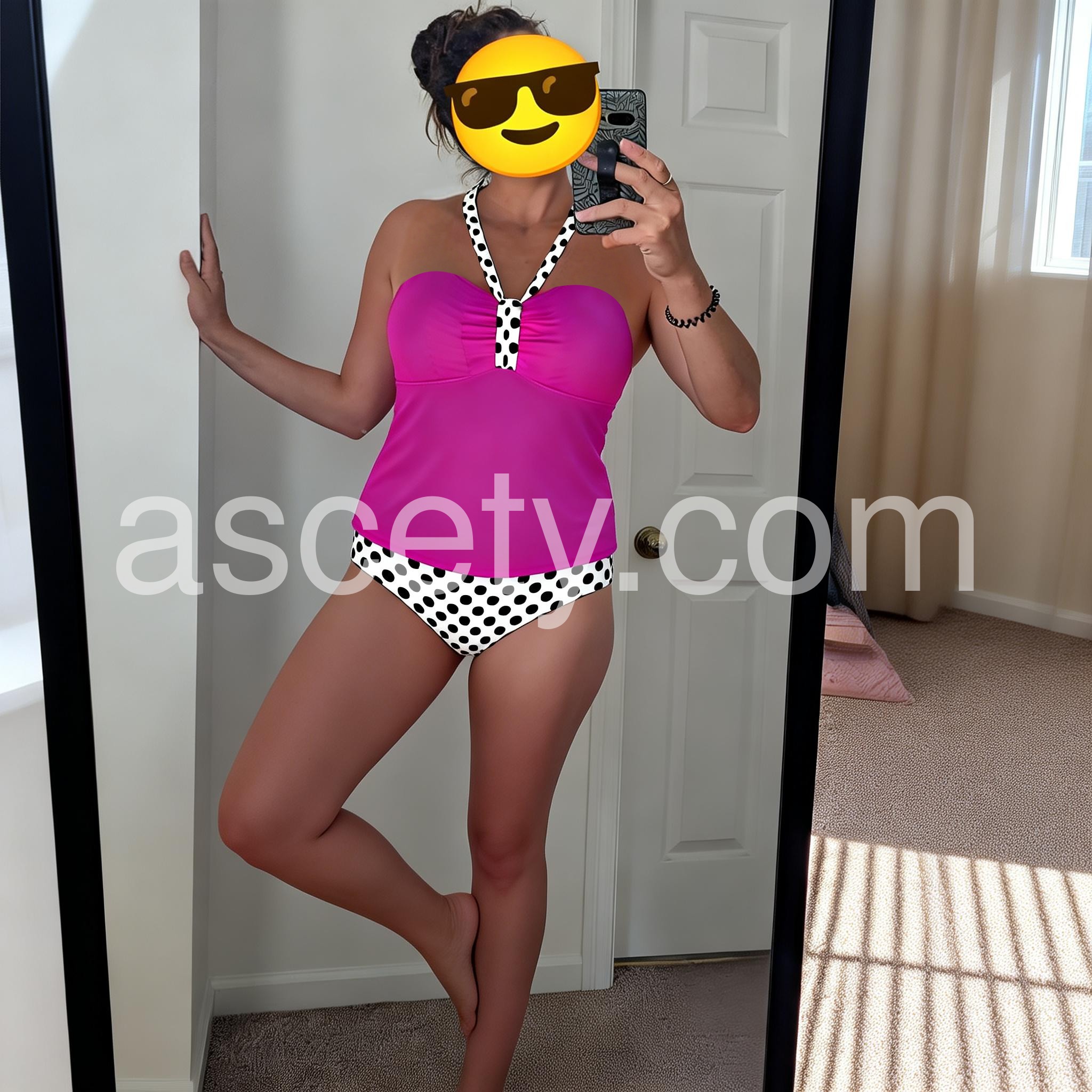 Showy Fuchsia Halter Polka Dot Swimwear