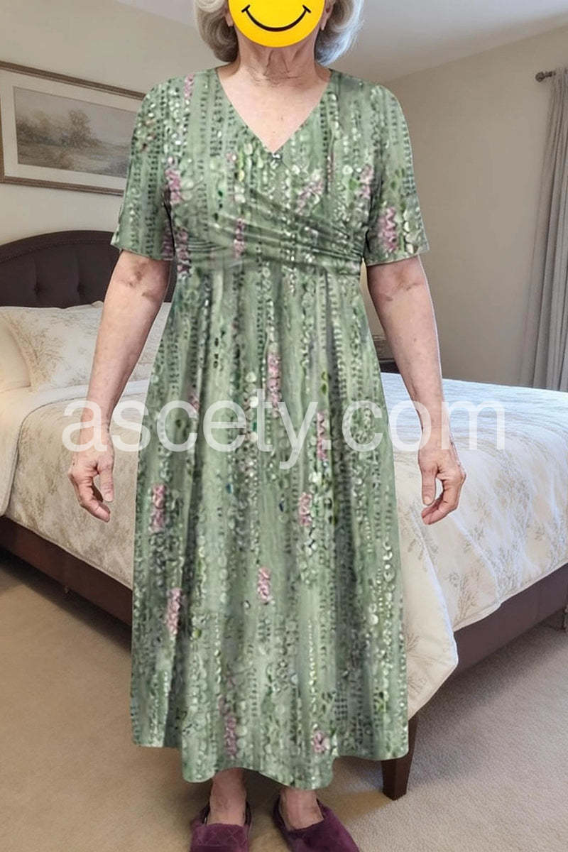 Green Plant Print Side Pocket Midi Dress