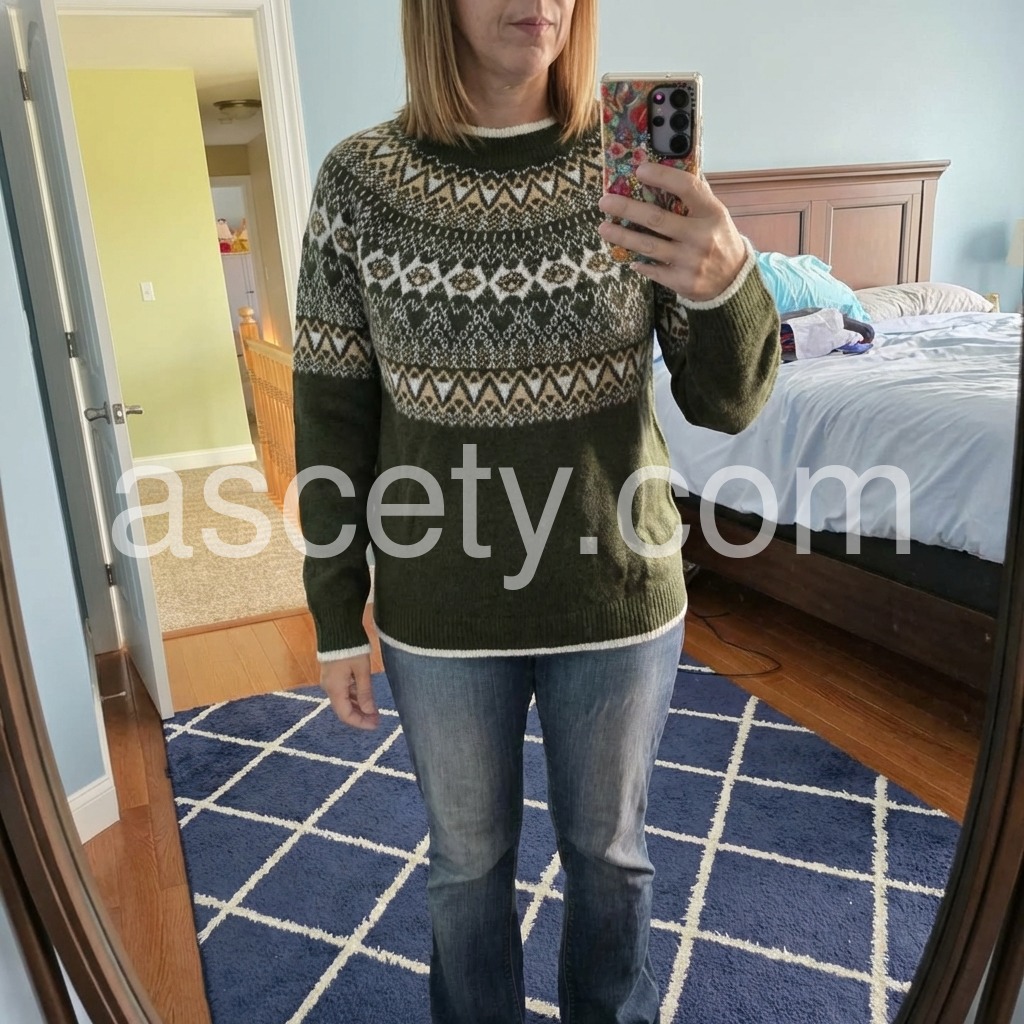 Retro Print Round Neck Long Sleeve Sweater