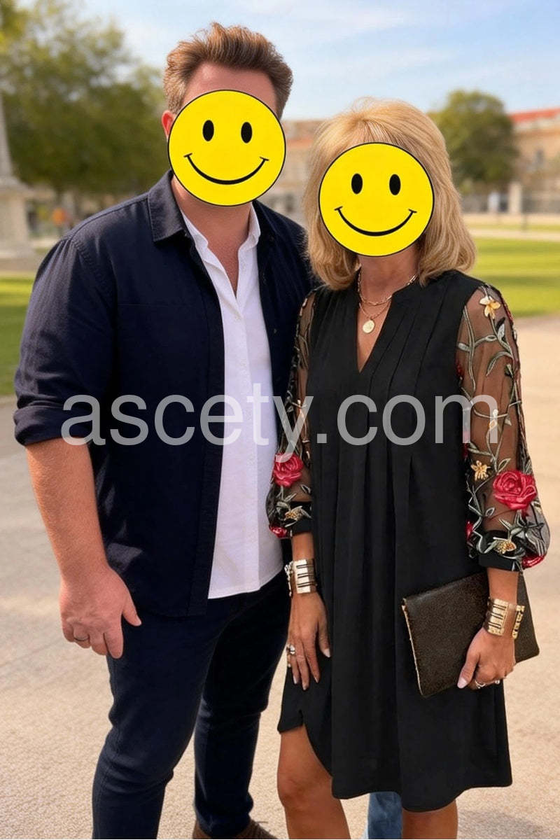 Elegant V-Neck Sheer Sleeve Mini Dress